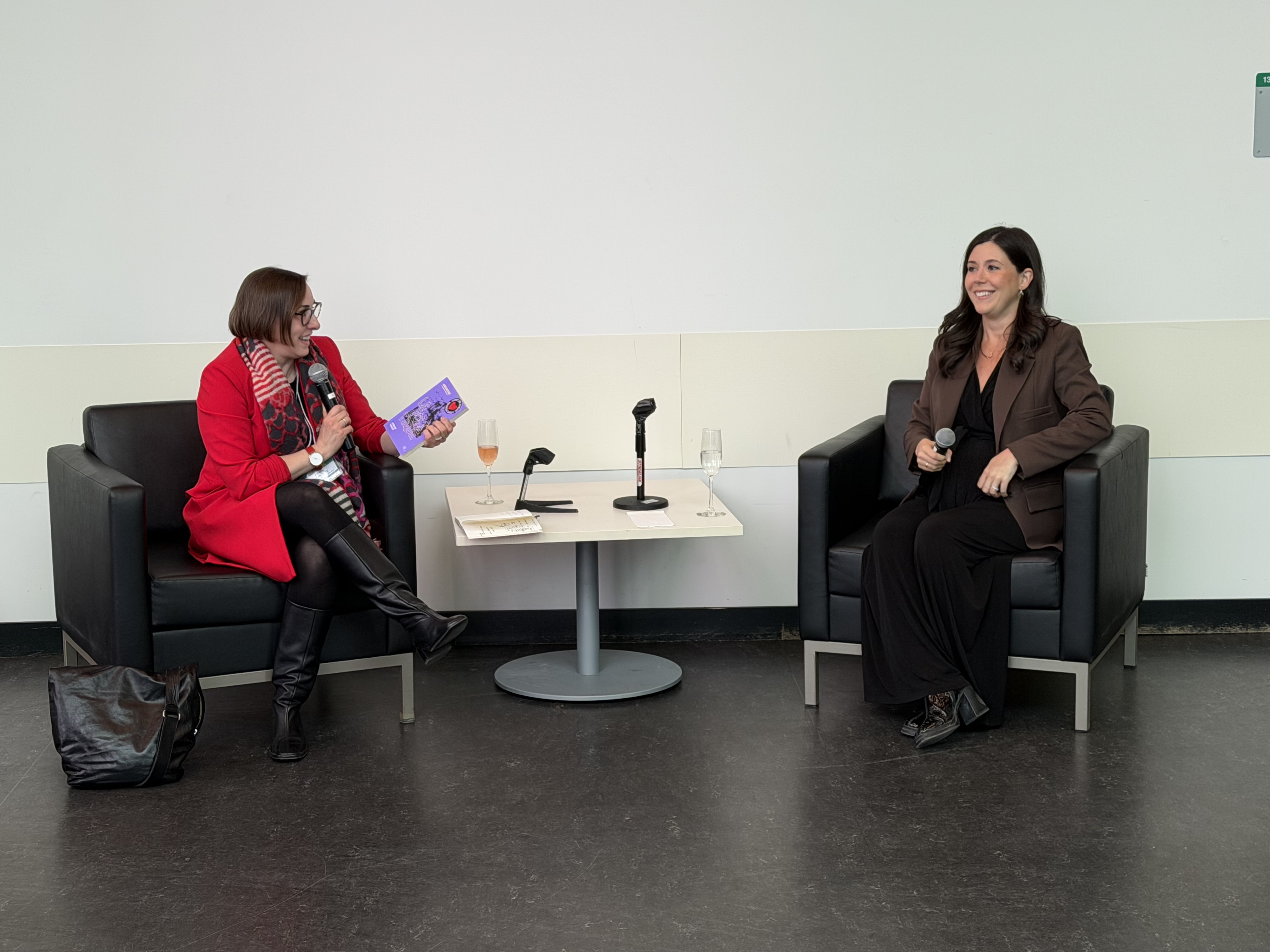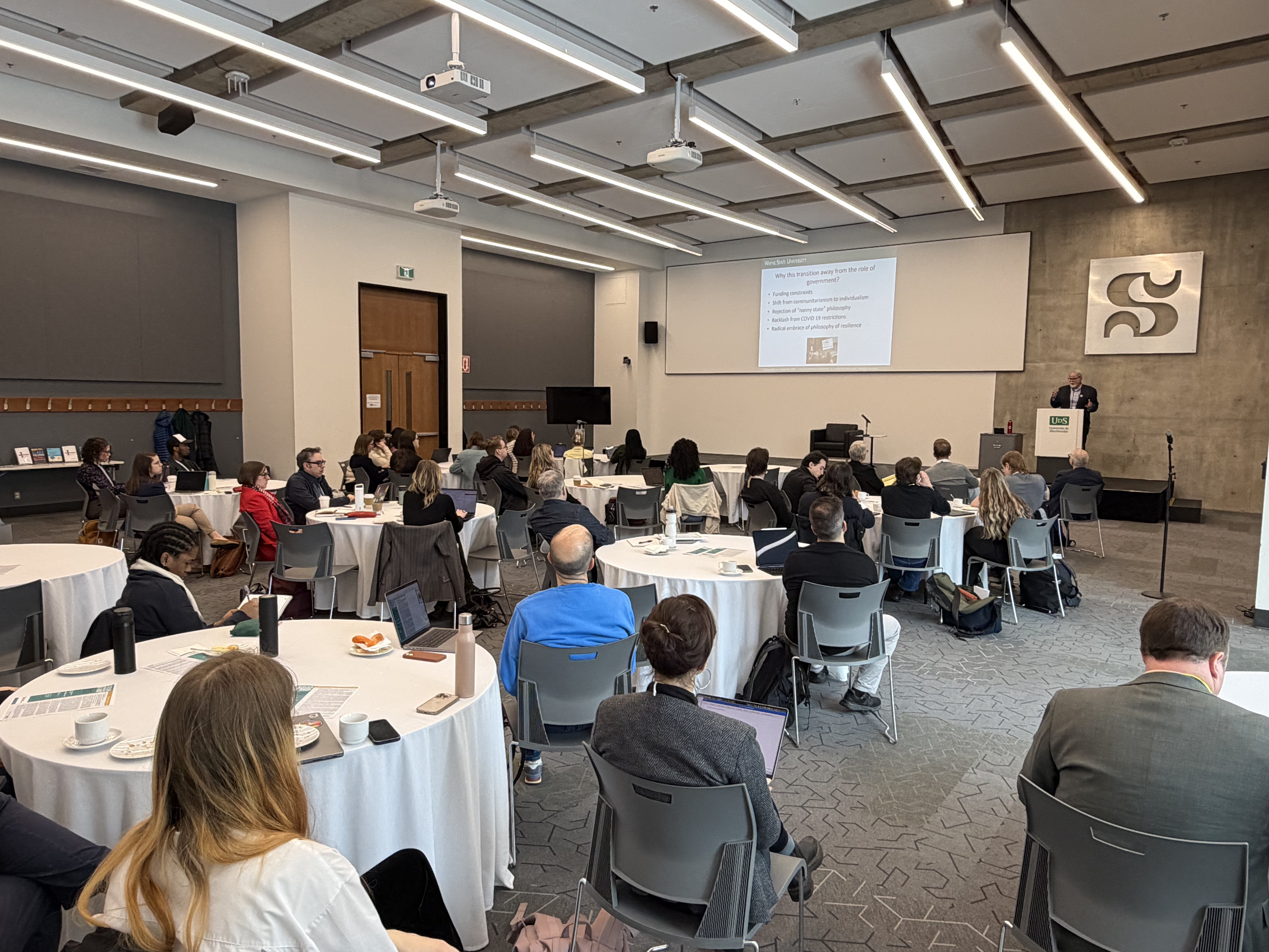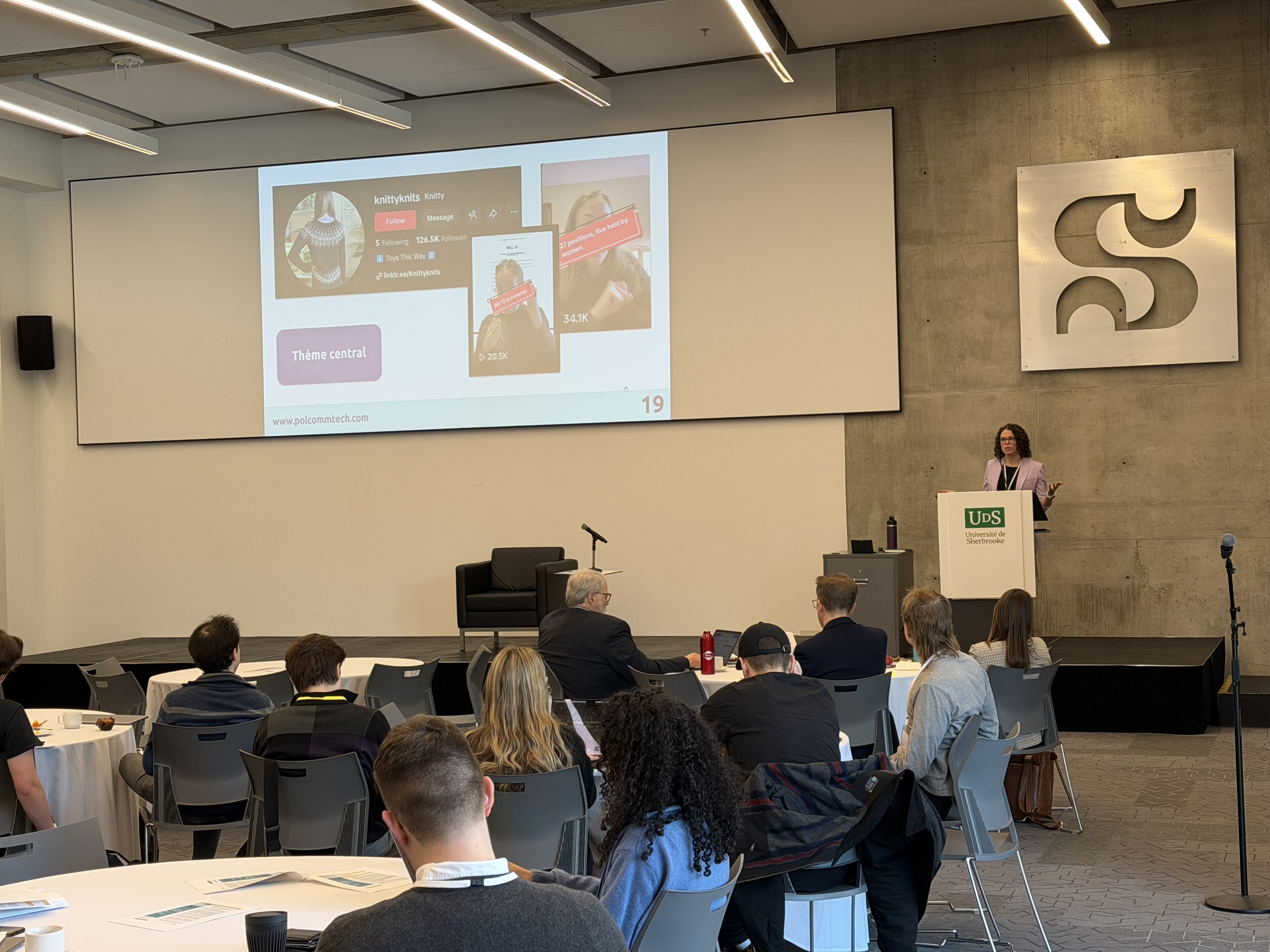 En fin de journée jeudi, une surprise attendait nos invité·es : lors d’un sympathique 4 à 6 amical entre les participant·es de l’Atelier international, Madame la mairesse de Longueuil, Catherine Fournier, s’est jointe à nous pour saluer notre équipe de recherche. Notre chercheuse principale, Pre Mireille Lalancette (UQTR), a réalisé une entrevue d’une trentaine de minutes avec notre invitée spéciale, parlant de son expérience politique, de sa prise en charge des communications politiques, de la réalité de la politique municipale au Québec et de la publication de son récent livre Apprivoiser la politique.